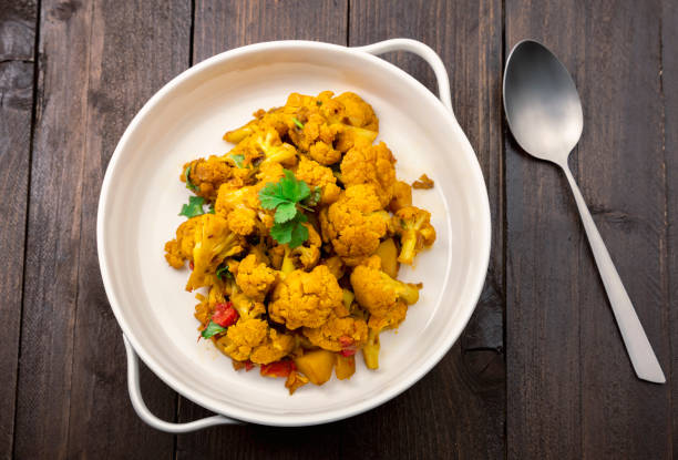 This dish is made with chickpeas and cauliflower, both chopped up. They are cooked until tender. That’s it! It’s time to eat!